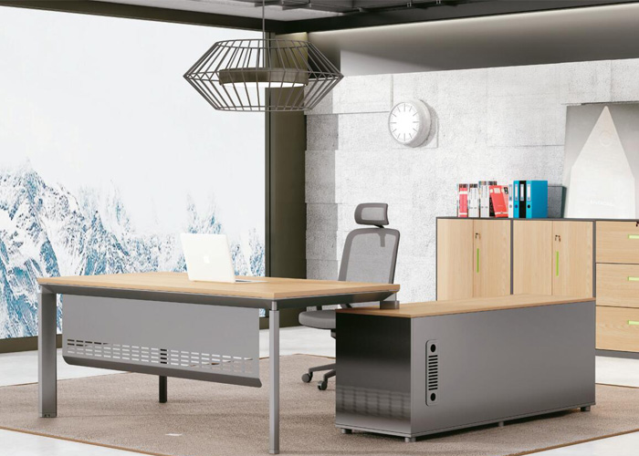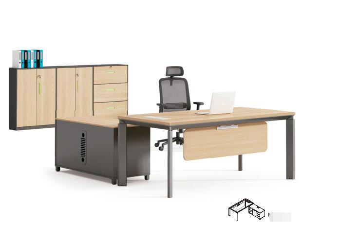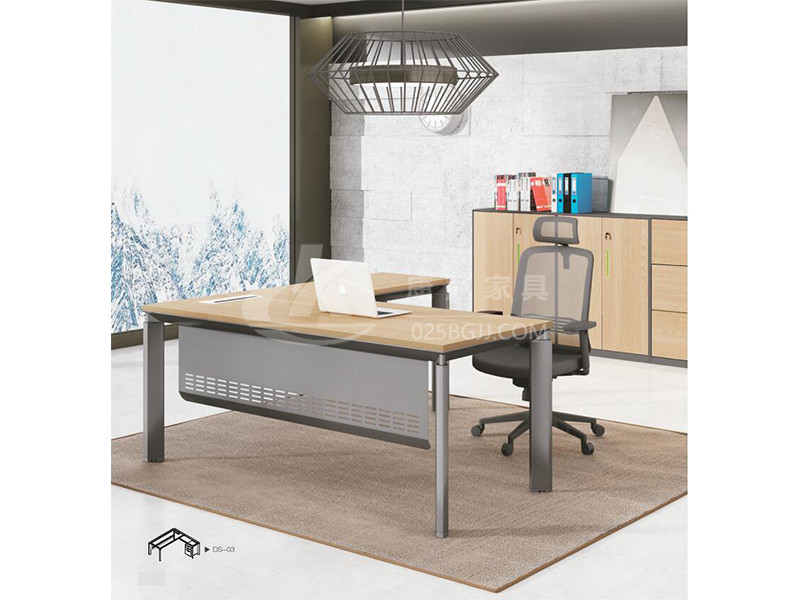 辦公家具班臺鋼腳采用直角和直行臺面相結合,達到材料與外觀設計的緊密結合,不同規格的側臺設計簡單,使用方便。臺面可配合不同規格的側臺,可根據辦公空間的不同需求進行組合搭配,讓您的空間更靈活多變。