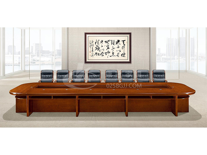 實木會議桌一體式矩形行政延續了該系列特征,既是電源滑蓋又是置物托盤,利用立體空間增加功能性;