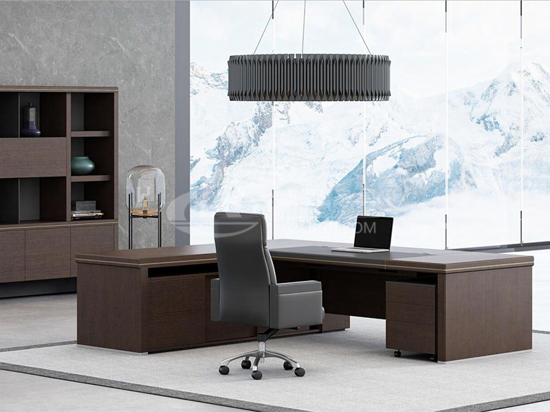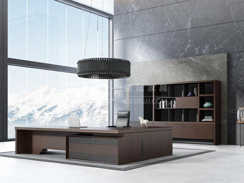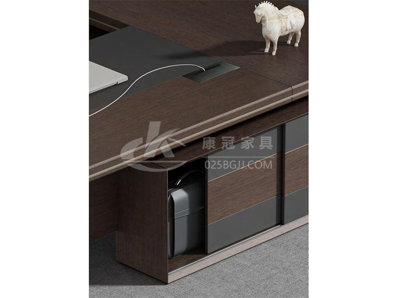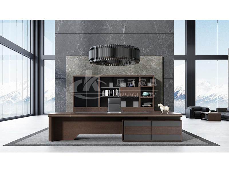 此款老板桌以現(xiàn)代風(fēng)格結(jié)合傳統(tǒng)厚重的設(shè)計(jì)體現(xiàn)了現(xiàn)代、時(shí)尚、實(shí)用,但又有朝氣息,領(lǐng)資系列方正的外觀給人以穩(wěn)重大氣感,側(cè)柜有效結(jié)合收納與走線(xiàn)功能;